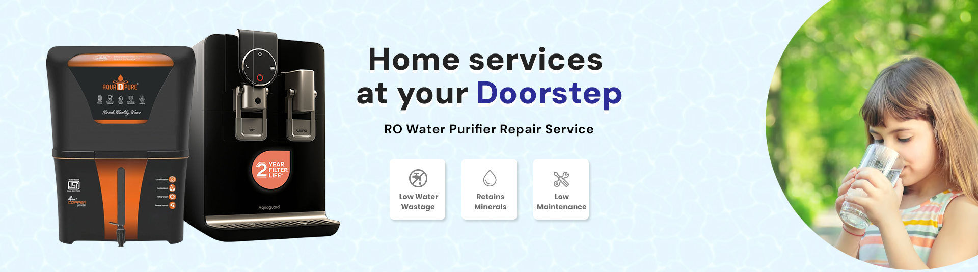 Get fast and reliable RO water purifier repair service with RO Service Man. Our 24/7 RO Service Center is always ready to help. Book your service now and get doorstep repair within just 2 hours. We handle all major RO brands and ensure quick, professional service every time.